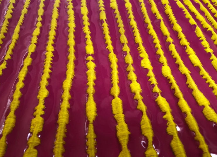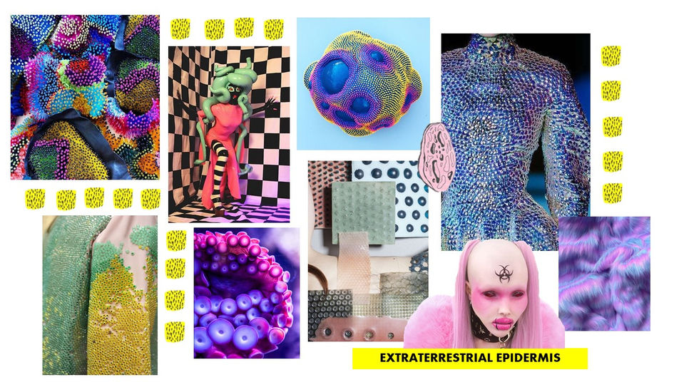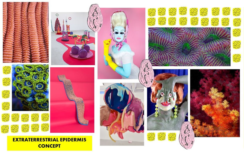 'Extra-terrestrial Epidermis’ is a collection that comprises of 15 individual textile pieces. Inspired by under the sea, it represents my take on what Alien skin would look like through flamboyant colours and contrasting/interactive textures.